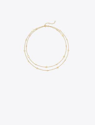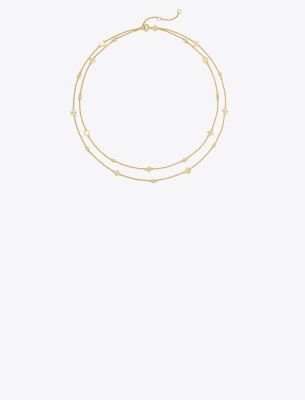 This Kira necklace creates an effortless layered look with its double strand design. Two chains in different lengths are strung with charms and our signature Double T. Timeless and perfect for every day.