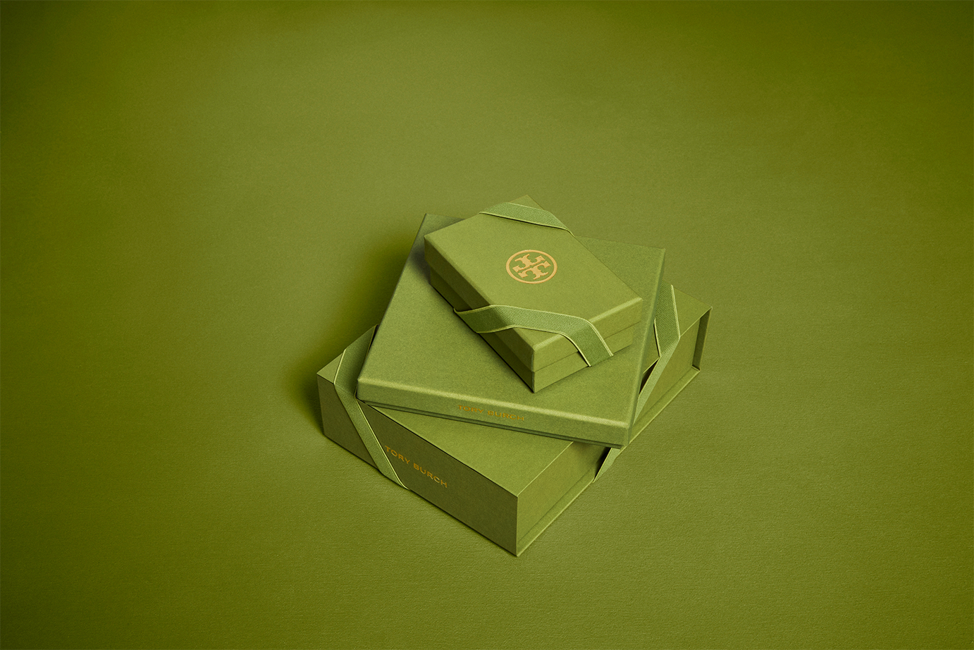 In 2025, we introduced new packaging globally, a harmonious blend of our heritage and sustainability. The mossy green is deeply personal to Tory and has been a brand color since she founded the company. Our packaging is crafted from recycled and responsibly-sourced materials that meet rigorous environmental certification standards.